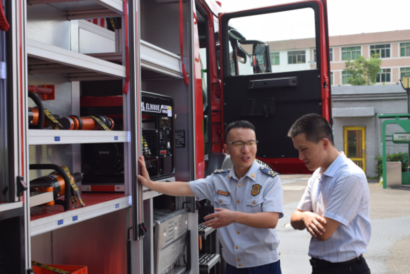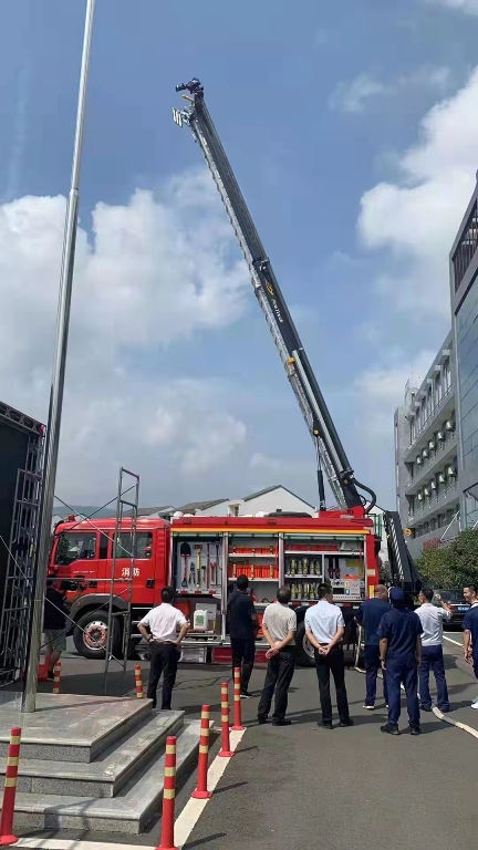 演示結(jié)束后,鎮(zhèn)政府各級領(lǐng)導(dǎo)及平陽縣大隊(duì)領(lǐng)導(dǎo)來到新購的舉升搶險(xiǎn)主戰(zhàn)消防車前,詳 細(xì)參觀、了解消防車輛技術(shù)性能,觀摩了新型消防車輛器材的展示和車輛各種功能操作 演示,并對我公司研制的新產(chǎn)品進(jìn)行了點(diǎn)評,給予了高度的贊許,稱此款車型最大化的 滿足了老舊小區(qū)、狹窄街道、城鄉(xiāng)低建筑物等滅火救援工作的需要。